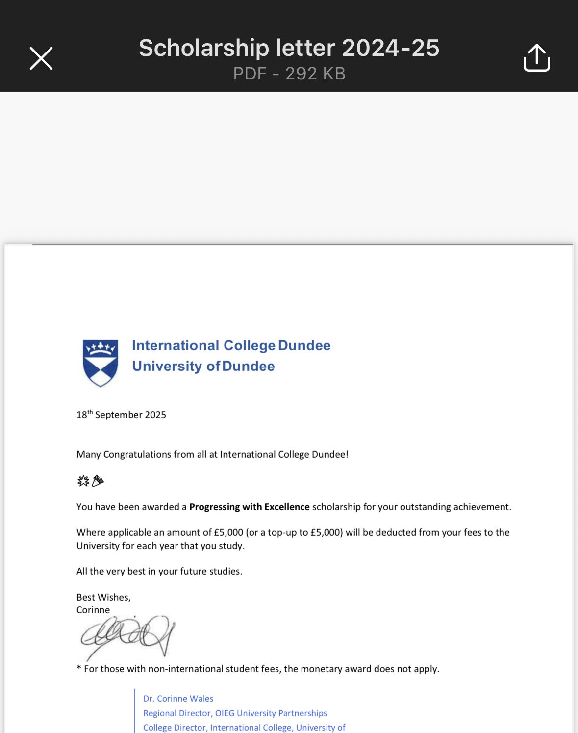 The supportive educational community at the University of Dundee played a significant role in her success: